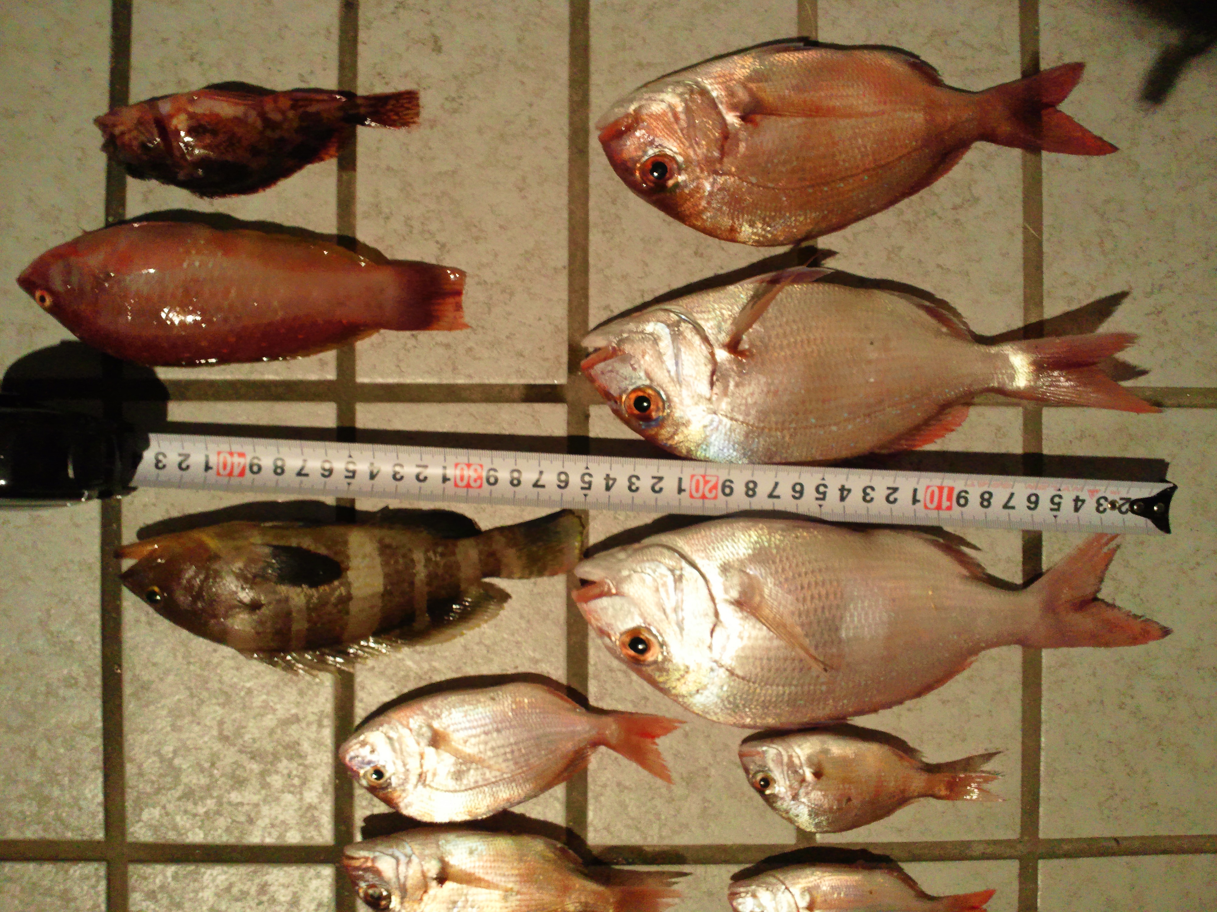 佐世保 初めての船釣り、山田さんと行きました。 タイ、ベラ、カサゴ釣れました。